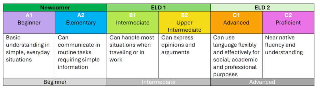 A nationally recognized framework that integrates social and academic language development across content areas.